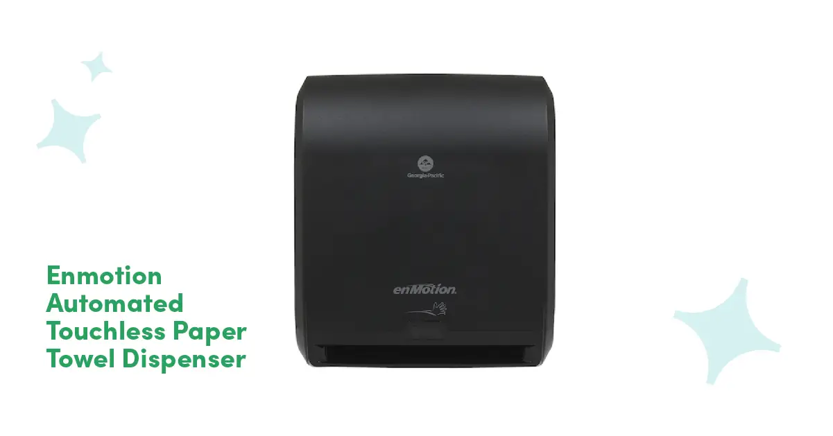 - We recommend the Enmotion Automated Touchless Paper Towel Dispenser featuring customizable settings and a 4-year battery life.